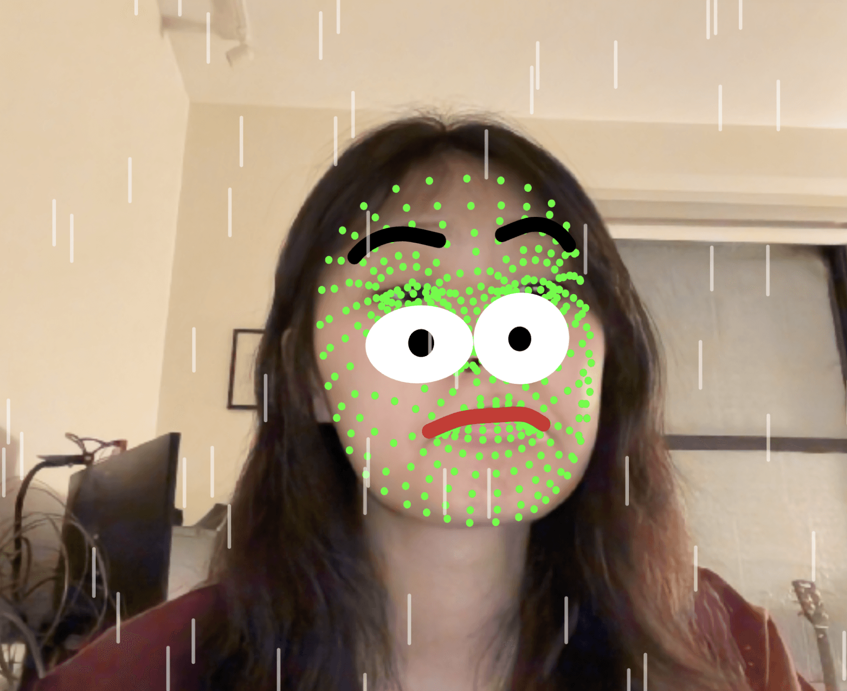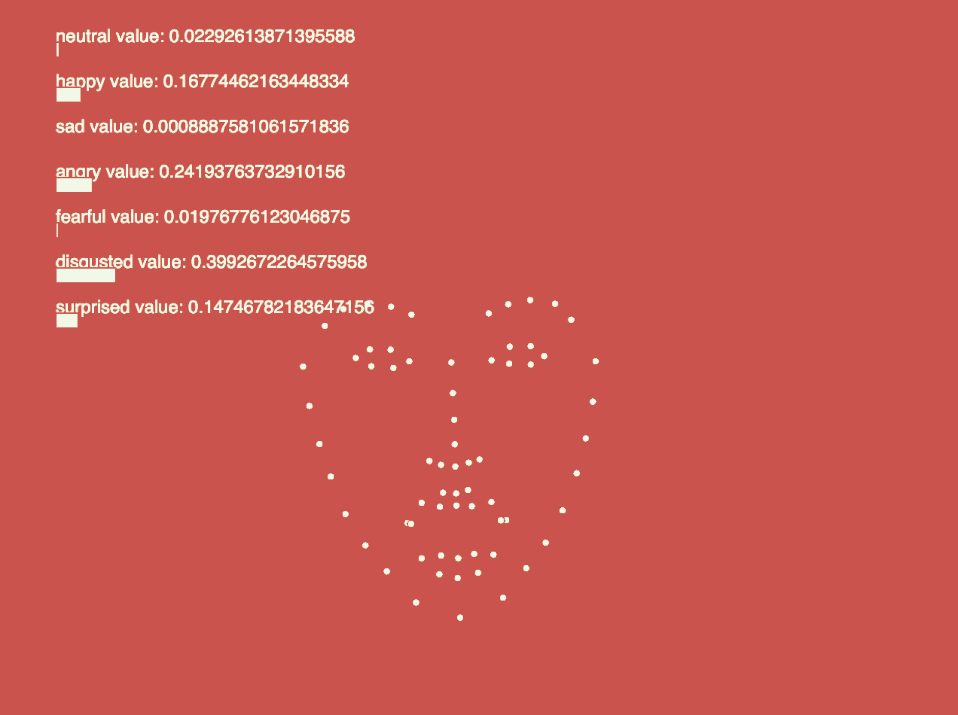 My initial approach relied on an emotion-detection API to classify real-time facial expressions into seven discrete emotion categories. However, through implementation and testing, I found that these classifications were often inaccurate and overly rigid—facial keypoints alone struggled to reliably represent nuanced emotional states.