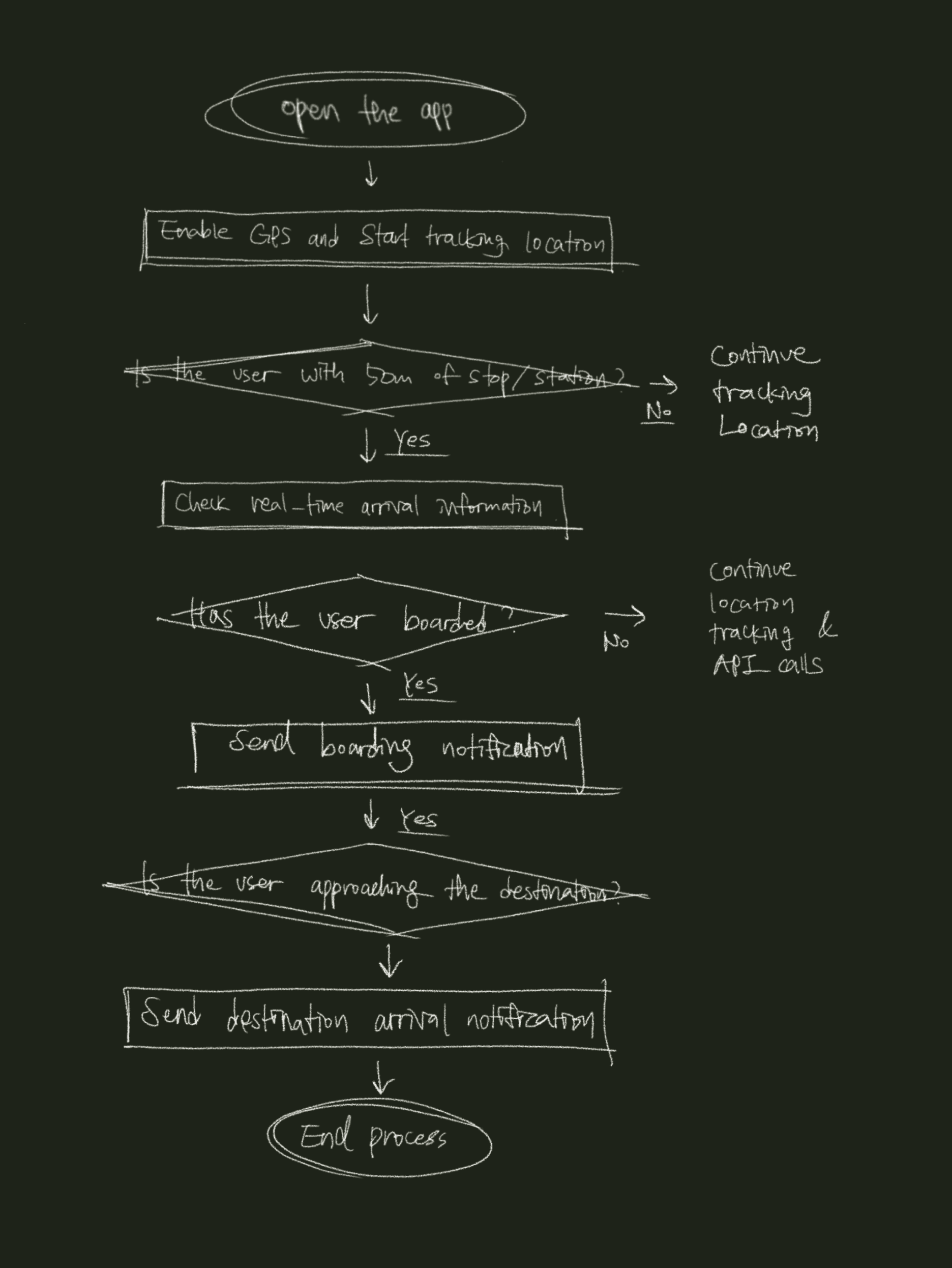 Flow Logic for a Real-Time Notification System to Detect Public Transport Boarding Status via GPS